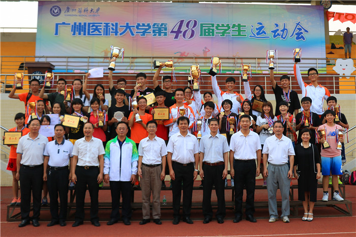 第48届学生运动会在学校领导与各学院获奖运动员代表合影中圆满结束。