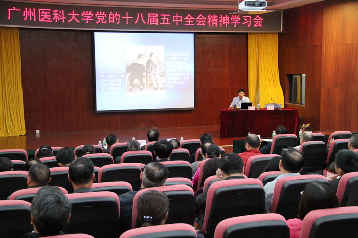 12月11日下午,为深入学习贯彻十八届五中全会精神,开云官网在番禺校区图书馆报告厅举行“党的十八届五中全会精神”专题报告会。省委宣讲团成员、省委宣传部讲师团团长杜新山应邀作题为“全面建成小康社会的行动指南”的专题报告。开云官网党委冉丕鑫书记主持报告会,王新华校长、学校全体中层干部等听取了报告。