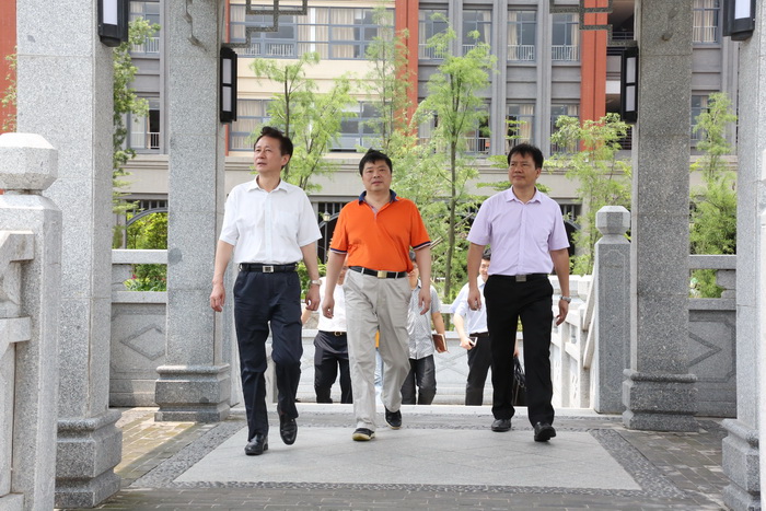 在冉丕鑫书记、王新华校长的陪同下,欧阳卫民副市长参观开云官网番禺校区