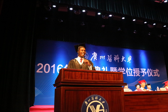 毕业留学生代表sinclair mosha发言