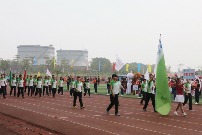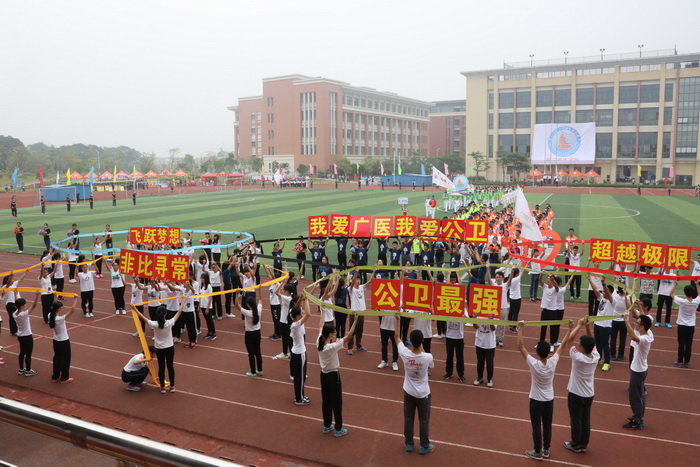 国旗队、彩旗队、鲜花队、裁判队依次入场。19个学院方阵步伐整齐,口号洪亮,精神饱满,他们精彩的表演引发阵阵欢呼声,充分展现了广医学子的蓬勃朝气和青春活力。