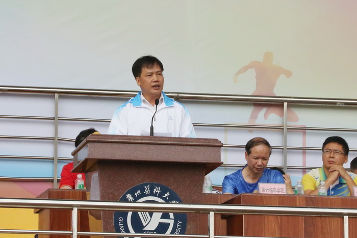 校长王新华致词。他指出,运动与健康是现代人最崇尚的生活元素,学校非常重视体育运动工作,大力支持师生员工参与各项体育活动;希望全体运动员以高昂的斗志和顽强的作风,积极投入比赛,努力超越自己;希望全体裁判员严格按规程裁判,做到公平、公正,让这次运动会赛出风格、赛出水平。