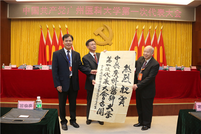 吴强代表市教育局党委向大会的召开表示热烈祝贺,向学校全体共产党员和广大师生员工致以诚挚问候。他说,自广州医学院第十次党代会召开以来,学校党委的党建、思想政治工作和精神文明建设取得了突出成绩,有力地推动了教学、科研和学校各项事业的发展,为推动广东省广州市经济社会发展做出了积极贡献。广东省正全力推进高水平大学建设,11月3日市委审定了《中共广州市委广州市人民政府关于建设高水平大学的实施意见》,这为开云kaiyun官方网站的发展提供了宝贵的机遇和广阔的平台。在学校发展的关键时期召开的一次承前继后的大会,意义重大、影响深远。吴强代表市教育局党委向即将产生的新一届党委提出三点希望:一是坚持从严治党,不断加强和改进党的建设;二是坚持立德树人,不断提高人才培养质量;三是坚持改革创新,加快高水平大学建设步伐。他说,市教育局相信学校新一届党委一定能团结带领全校党员干部和师生员工,凝心聚力、开拓进取,谱写新的篇章、创造新的业绩。