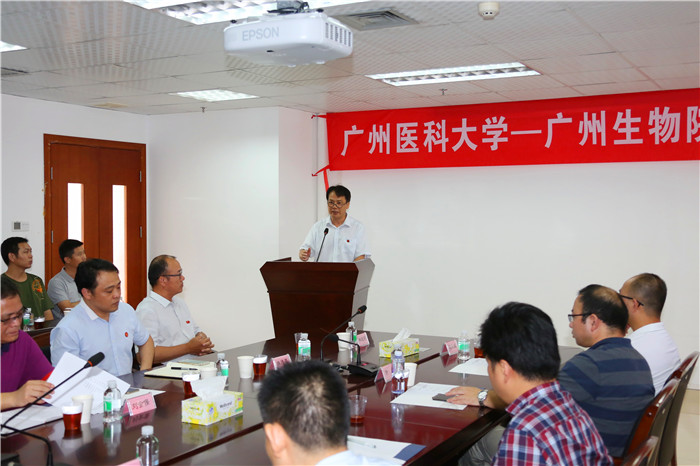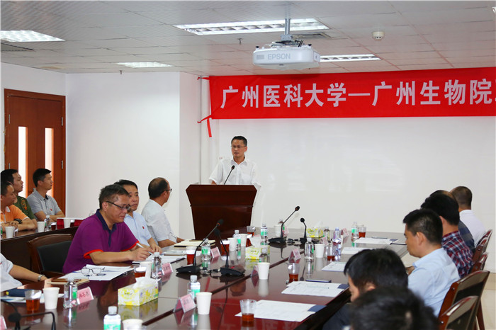 校长王新华致辞,他回顾了广医与广州生物院持续多年的良好合作关系与系列合作成果,双方共建高水平大学和高水平研究院得到了广州市委市政府的高度认可和深切期待。其中,联合共建生命科学学院,培养具有创新精神和科研能力的生物医药技术领域优秀人才,是双方贯彻落实全面战略合作协议的重要内容和有效举措。开云官网生物技术本科专业已有12年办学历史,为高水平大学建设五大重点学科群之一的基础医学学科群的重要支撑,具有广阔的发展前景。广州生物院拥有高水平的科研人才和科研平台,在干细胞理论和应用研究、细胞分化、疫苗和抗体药物等方面具有国际先进研发水平。双方共建生命科学学院,可以资源共享、优势互补和共同发展,既可有效提升生物技术人才的培养质量和相关学科的发展,积极促进高水平大学建设;也能有利于教研相长,提升广州生物院的科研实力和成果转化能力,更好地为国家和区域经济发展服务。希望双方形成合力,在师资队伍建设、人才培养、学科建设、科学研究等方面大胆开展探索和实践,将生科院建设成为校院合作办学的典范。