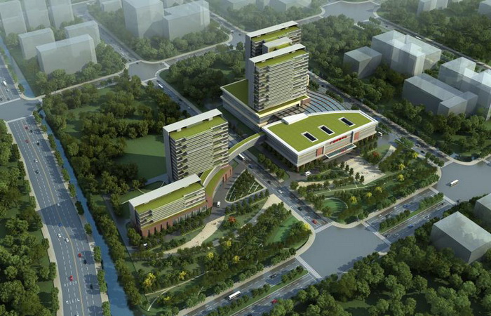 中心被规划市政路分为东西两侧,东侧地块主要是教学科研和学术交流区,由国家重点实验室(15层)、学术科研楼(6层)组成;西侧地块主要是医疗区,由门诊楼(5层)、医技住院综合楼(20层)组成。4座主体建筑之外,横跨市政路的东西两侧,将通过空中走廊连接。项目计划于2019年12月竣工。