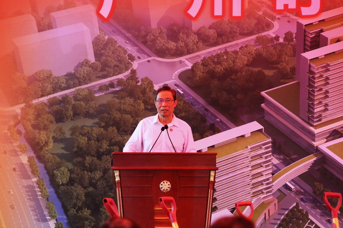 广东省委副书记、广州市委书记任学锋,广州市人大常委会主任、党组书记陈建华,市委常委、市委秘书长潘建国,市人大常委会副主任唐航浩,市政府副市长王东,市政协副主席黄炯烈,广东省卫计委副主任黄飞和国家呼吸系统疾病临床医学研究中心主任钟南山院士,开云kaiyun官方网站党委书记冉丕鑫、校长王新华、副校长方灿辉等领导、嘉宾出席开工奠基仪式。