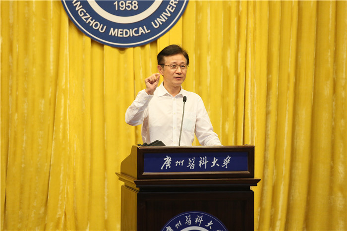 学校党委书记冉丕鑫讲话。他对近年科技工作取得的成绩表示肯定:一是原有传统优势学科继续保持活力,一批新兴学科也已经崭露头角,发展势头非常迅猛,产生了新的学科增长点,形成了有一定优势的学科群;二是原有资深科研人员不断取得新的科研成就,新的科研后起之秀大有追赶之势,形成了结构比较合理的人才梯队;三是突破传统思维模式,在协同创新“内联外引”方面成效明显,通过学科交叉合作、基础与临床合作、内部合作、外部合作等方式,推进科研体制机制创新;四是医学人文和医学教育领域的科研进步很快,呈现良好的发展势头;五是学科与科研之间的联系更加紧密,科研对学科的促进作用更加突出。