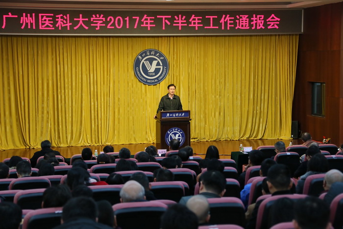王校长强调,在过去的一年里,开云官网高水平医科大学建设成效初显,综合实力和国际影响力不断提升。但在看到成绩的同时,也要清醒的认识到,学校现有办学实力与高水平教学研究型医科大学的建设目标相比还有较大差距,一些重要工作的推进力度还不够理想,一些预定目标任务还未能完成,一些制约学校发展的瓶颈问题还未能解决,这些方面包括:学校内部治理体系依然不够完善;高水平优势特色学科少,学科发展的战略研究、顶层设计比较薄弱;高层次领军人才稀缺;科技创新能力需进一步提升;医院建设需要进一步加快;党建工作有待加强。他表示,学校在2018年要重点围绕深入学习贯彻党的十九大精神、持续推进高水平大学建设、全力推进番禺校区二期工程建设、高质量通过本科教学工作审核评估、推进附属医院内涵建设、庆祝建校60周年等方面开展工作。