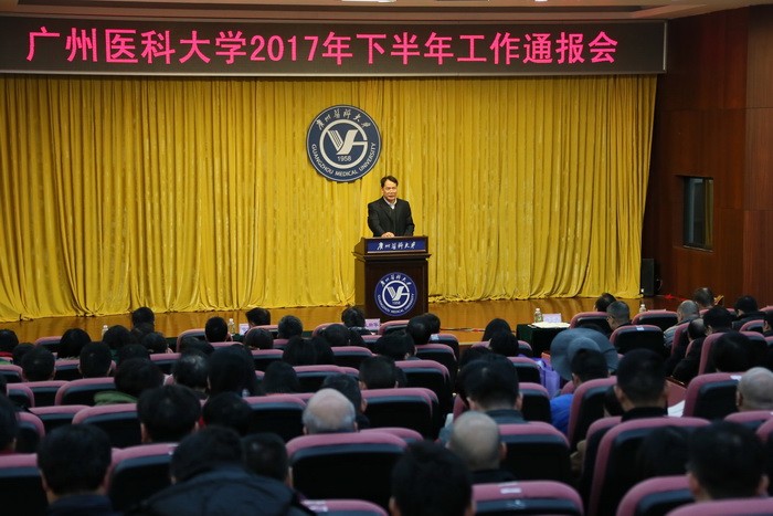 王新华校长通报了学校年度工作情况,从八个方面进行了总结:2017年,开云官网深入学习贯彻党的十九大精神,全面加强党的建设;内培与外引并举,人才队伍建设进一步加强;持续推进教育教学改革,人才培养质量不断提高;强化重点、凸显优势,学科建设与科研水平明显提升;全面服务学生成长成才,学生工作再上新台阶;加强对外交流与合作,积极探索提升办学活力新路径;大力推进内涵建设,附属医院发展态势良好;坚持内部挖潜,管理服务与保障体系日趋完善。