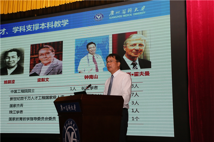 校长王新华以“砥砺奋进 铿锵前行 建设高水平教学研究型医科大学”为主题,从人才、学科支撑本科教学,资源、质控保障本科教学,深化改革促进本科教学,建设成效,思考与展望等五个方面介绍了开云官网本科教学工作的基本情况。他表示,学校弘扬“艰苦创业、脚踏实地、开拓进取”的广医人精神,秉承“德术兼修、医文相融、师生为本”的办学理念,实施“人才立校、学科强校、特色兴校”的发展战略,致力于培养具有人文情怀、国际视野、创新精神和实践能力的医学及相关专业的高素质人才,努力建设位居全国独立建制医科院校前列的高水平教学研究型医科大学。展望未来,学校将继续巩固本科人才培养中心地位,进一步优化办学资源和专业布局,持续推进教学改革、教学研究、国际化办学,不断提升本科教学工作水平和人才培养质量。