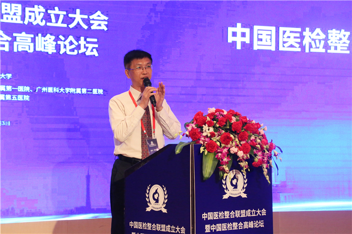 傅卫主任表示,人民群众对高水平和多样化的医疗卫生服务的迫切要求与不平衡不充分的医疗卫生服务产生了新矛盾,这种矛盾对医学检验也提出了更高的要求。医检整合联盟顺应了时代潮流,响应了现实需求,也使得“整合”由概念走向实践。很高兴能看到超过三百家科研院所、医疗机构、企业和学会加入联盟,也期待联盟能整合资源形成合力,充分发挥平台的优势,更多地凝集国内外优质资源,搭建协同创新的共享平台,推动各学科的交叉融合。同时希望联盟能更好地发挥辐射带动的作用,推动检验专科医联体的建设。