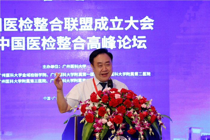 成立大会之后,“中国医检整合联盟高峰论坛”举行。广州金域医学检验集团副总裁申子瑜教授主持论坛。樊代明院士、尚红教授、罗健东教授分别作了题为《整合医学——谈反向医学研究》、《中国成人临床检验项目参考区间现状和研究进展》、《深度融合 协同育人——人才培养新模式的改革与实践》专题报告。