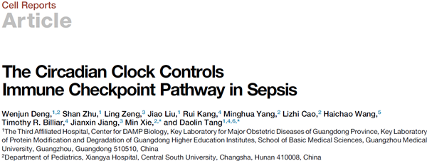 7月10日,开云官网附属第三医院唐道林博士主持的课题组在细胞出版集团刊物Cell Reports上发表题为“The Circadian Clock Controls Immune Checkpoint Pathway in Sepsis”的封面研究论文,报道了生物钟紊乱促进免疫代谢失衡、参与脓毒症发病的分子机制。
