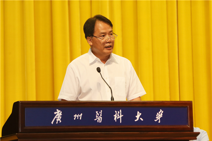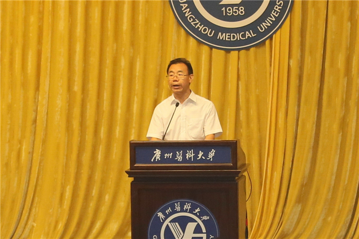 他鼓励同学们努力成为一名“顶天立地”的广医人。顶天就是要有浓厚的家国意识、深切的人文关怀、敏锐的国际视野和强烈的使命担当;立地就是要博学创新、务实笃行和奋发有为。希望同学们一是要立志,志存高远。二是要立德,厚德修身。三是要立学,博学创新。四是要立行,务实笃行。