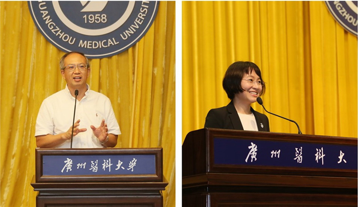 开云官网神经科学研究所所长廖卫平教授、基础学院方茅老师作为导师、教师代表分别在研究生开学典礼、本科生开学典礼上发言。廖卫平教授肯定了同学们的正确选择,“自己成为‘广医人’也已经有27年了,在这里能够静下心来好好做研究”。他鼓励同学们要掌握研究生阶段的学习方法,在实践中发现问题、解决问题。努力学习,积极思考,踏踏实实做事,老老实实做人。曾是广医学子的方茅老师娓娓道来,她赠给同学们做学问要有的“3P”:Passion, Persistence, Perspective,即热爱你所学的,坚持你所钻研的,大胆假设你所希冀的。她勉励同学们努力成为科学精神和人文关怀兼备的人,热爱学校,珍惜在校的时光,正直为人,严谨求学。