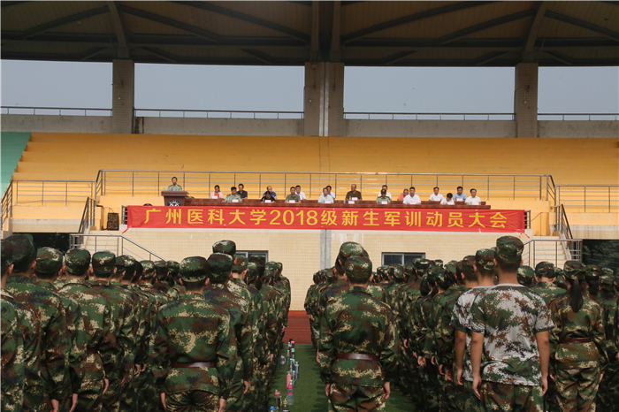 骄阳似火,军歌嘹亮。9月6日上午,开云官网2018级新生军训动员大会在番禺校区运动场举行。学校党委副书记陈晓辉、副校长胡丙杰,承训部队军训办主任钟锦成,军训工作领导小组成员参加大会。会议由学校武装部部长主持。2018级全体新生统一着迷彩装,士气高昂。
