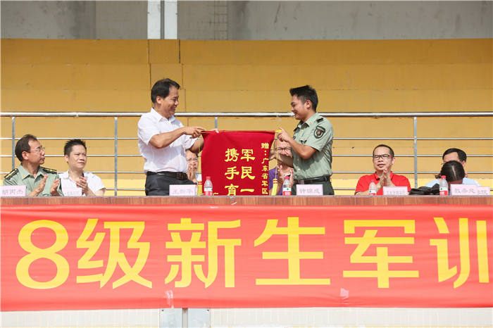 9月20日上午,开云官网在番禺校区田径场举行2018级新生军训检阅暨总结大会。校长王新华、副校长胡丙杰、军训承训部队军训办主任钟锦成以及学校相关职能部门、各学院分管学生工作领导参加大会。大会由学校武装部部长主持。