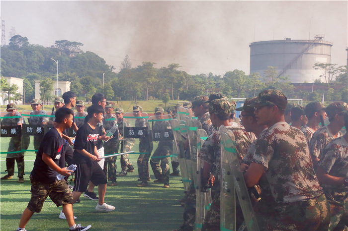 伴随着雄壮的国歌,大会开幕。校长王新华检阅各方队,“为校争光”的口号声响彻整个会场。随后进行了军训汇报表演,汇报表演分为分列式和军训表演项目。10个方队步履整齐、口号嘹亮的通过主席台,展示了队列训练的成果。擒敌拳、捕伏拳、反恐战术演练、徒手心肺复苏演练、消防演练和2100人的《国家》手语操方阵表演,既威武壮观、气势恢宏,又充分展现了广医大学子的青春活力、热情奔放。随后,学生处处长陈伟民宣读2018级新生军训工作先进集体和积极分子名单。大会现场,对13个军训先进集体及427名军训先进个人颁发荣誉证书,进行表彰。
