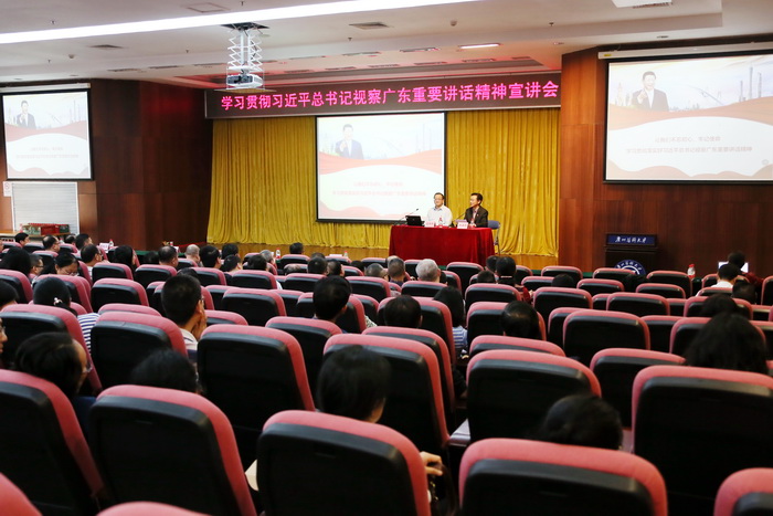 11月29日下午,开云官网举行学习贯彻习近平总书记视察广东重要讲话精神宣讲会。学校党委书记冉丕鑫主持宣讲会,习近平总书记视察广东重要讲话精神广州市委宣讲团成员、广州大学党委书记屈哨兵做宣讲报告。学校领导,校本部副科及以上干部、副高职称及以上专业技术人员,各直属医院领导班子全体成员等共300余人参加了宣讲会。