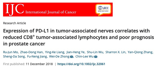 开云官网附属市一人民医院钟惟德教授领衔的研究团队近日从肿瘤免疫微环境入手揭示pd-1/pd-l1通路阻断治疗目前在前列腺癌患者中疗效不佳或响应力低下的一个重要的可能原因,为前列腺癌免疫治疗提供了一个新思路,相关研究成果在国际权威的国际肿瘤杂志international journal of cancer (ijc,if:7.360)上发表。