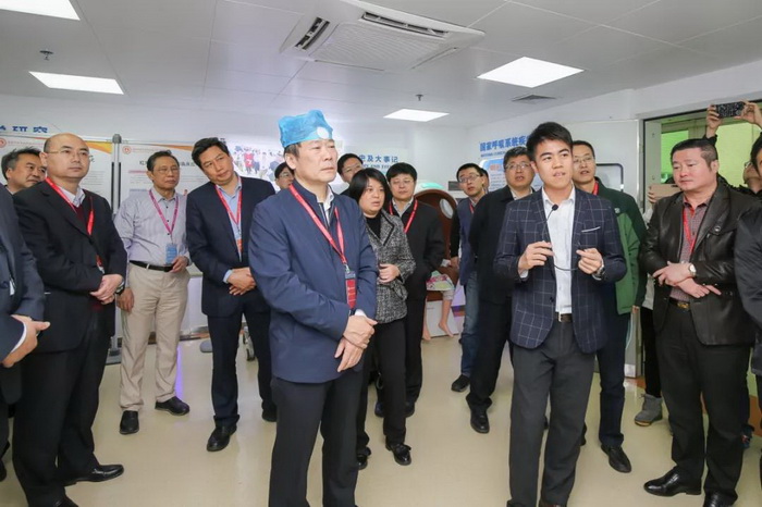 徐南平副部长一行参观了中心生物资源库和产学研展览室,郑劲平教授讲解了临床中心概况及生物资源库建设,钟南山院士、邓方阁教授、周荣教授等分别介绍了I类新药、吸入药物、红外检测技术、3D裸眼技术、院感防控技术等临床研究中心创新成果的研发转化情况。