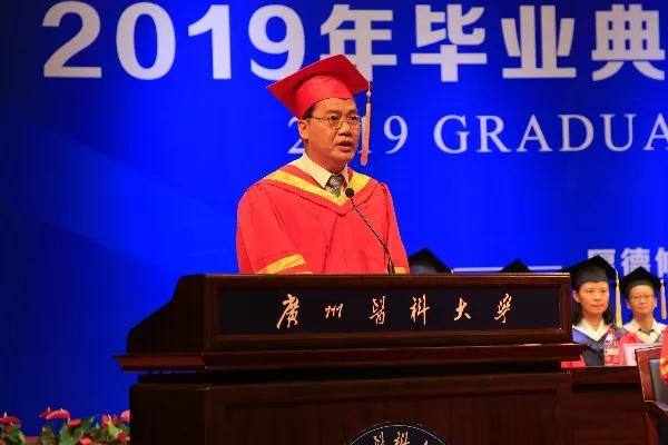 国务院特殊津贴专家、广东省医学领军人才、广州呼吸健康研究院罗远明教授代表教师发言。结合自身从广医毕业后在世界著名大学的留学、任职经历,他认为,广医有一流的学科、一流的专业、一流的学者,这份履历足以支撑同学们精彩人生的启程,他自身亦始终把广医作为研究工作的大本营。科学研究除了质疑与批判思维,还需要毅力、付出和冒险精神,希望同学们坚守专业理想,以高质量的创新服务国家、成就自我。