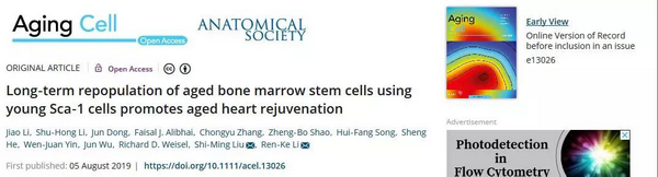 广医在线讯 年老患者机体内源性干细胞质量及数量的下降,影响了心脏损伤后的修复及再生。近日,衰老领域影响因子国际排名第一的Aging Cell (IF: 7.6)杂志发表刘世明教授和李仁科教授研究团队论文,证实通过骨髓重建,年青小鼠Sca-1+骨髓干细胞可归巢至年老小鼠心脏,并通过Cxcl12/Cxcr4分子通路,改善年老小鼠宿主血管内皮细胞功能,从而减少年老小鼠心脏衰老,并促进心肌梗死后心脏功能的修复。