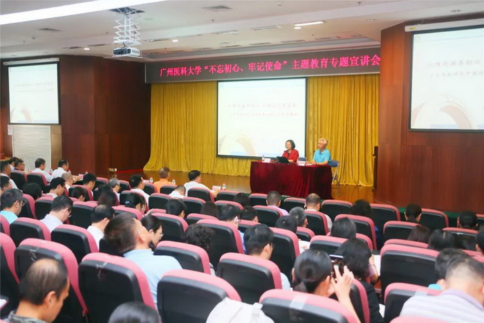 学校领导班子成员、全体中层干部、在职教职工党支部书记(含直属附属医院)、番禺校区各职能部门党员、各直属医院办公室主任和全体辅导员参加了宣讲会。