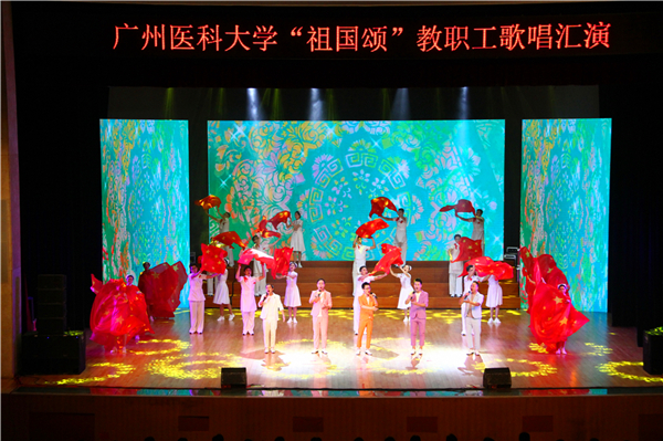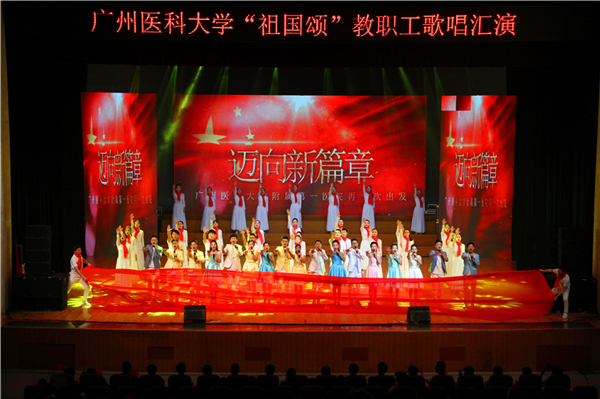 广医在线讯 壮丽七十载,奋进新时代,忆往昔峥嵘岁月,唱今朝时代颂歌。金秋十月,阳光明媚。庆新中国七十华诞,抒爱国爱校情怀,开云kaiyun官方网站于10月23日下午在番禺校区举行“祖国颂”教职工歌唱汇演。学校本部、各附属医院的演出队伍以及师生员工齐聚礼堂,以歌舞剧、表演唱、情景音乐、音诗画等形式,热情讴歌祖国的伟大成就,展现教职工努力创业奋斗、追求幸福生活的精神风貌,激励师生员工不忘初心、牢记使命,为祖国教育、医疗事业的发展贡献力量。