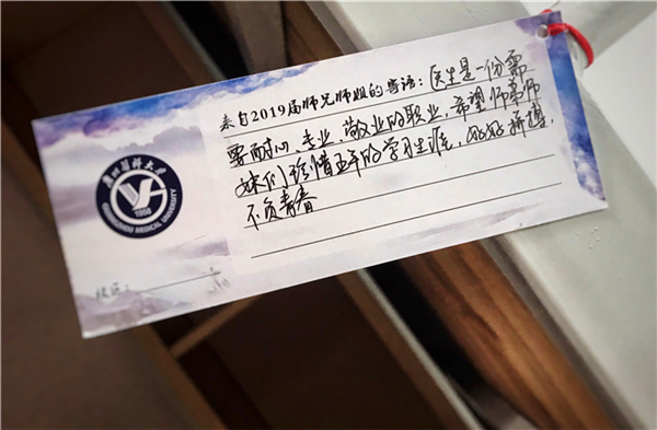 2019级新生中,有不少同学来自医学家庭,受家庭的熏陶选择了医学,选择了广医。刘佳鹏说:“受家庭影响,觉得医生很高尚,并觉得医生很厉害,因此想当医生。”关岚曦说:“我是一个在医学氛围中长大的孩子,小时候的我进到医院会有一种亲切感,尽职尽责的医护人员对我影响颇深,学医是我多年的梦想。”许彦琳说:“生活在一个医学家庭是件很幸福的事,家里的每一个人跟医学都有密切的联系。我学医也是我们家众望所归了吧,有时感觉像命中注定,我从上个世纪开始就跟白大褂脱不了干系啦。”许圣朝说:“博极医源,精勤不倦。我辈当勤学,与广医共同成长。”