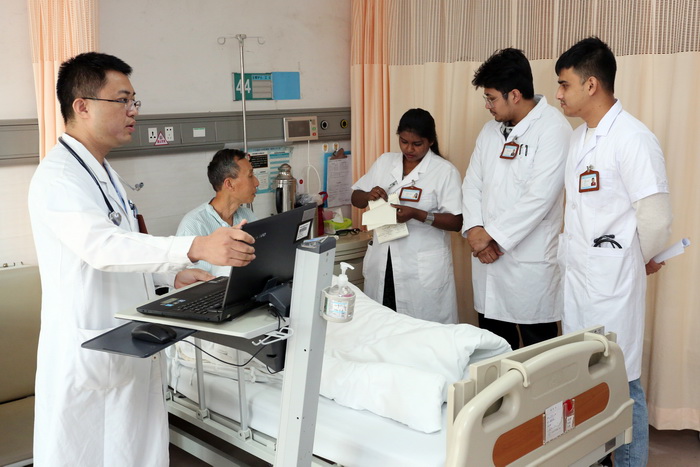 调研期间,专家组查阅关于招生、管理、教学等档案材料,进行了随堂听课,并与基础课程教师、临床课程教师、留学生代表分别开展了两场座谈会,还实地考察了开云官网附属第二医院内科查房带教、小讲课、外科换药操作等情况并查阅了实习生档案材料。