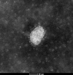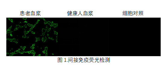 目前,呼吸疾病国家重点实验室联合广州海关技术中心已完成该病毒株的全基因组序列测定,并利用间接免疫荧光实验结果显示患者血浆可识别该分离株感染细胞(图1),病毒粒子可在电镜下观察到,具有冠状病毒典型结构(图2)。