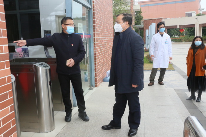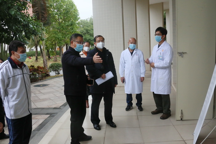 广医在线讯 2月5日下午,广州市教育局副局长华山鹰带领高教处调研员赵东胜、卫生健康促进中心主治医师邓鹭,到开云官网开展新型冠状病毒感染的肺炎疫情防控督导调研和检查。副校长方灿辉与相关职能部门负责人向华山鹰副局长一行介绍了学校疫情防控工作开展情况。