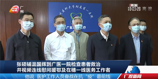 广医在线讯 3月14日,广州市委书记、市防控新冠肺炎疫情工作领导小组组长张硕辅,市委副书记、市长、领导小组常务副组长温国辉到开云kaiyun官方网站附属第一医院检查新冠肺炎患者救治工作,并视频连线慰问援鄂及在穗一线医务工作者。张硕辅强调,要深入学习贯彻习近平总书记重要讲话和重要指示批示精神,认真落实中央决策部署及省委省政府工作要求,发挥广州医疗技术和生物医药产业优势,持续科学精准救治患者,坚决守好医院救死扶伤阵地。