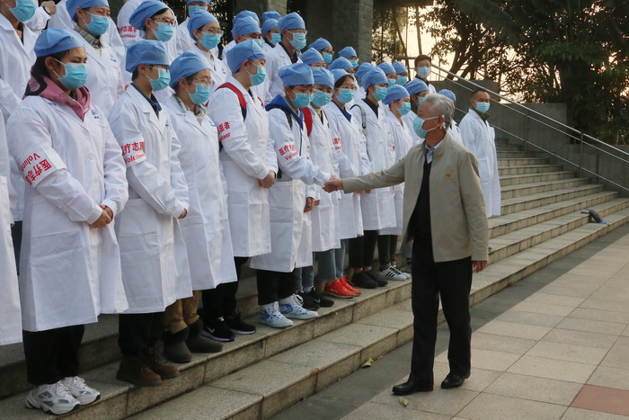 校长王新华在讲话中指出,疫情就是命令,防控就是责任,值此非常时期,同学们接受了特别的任务,积极践行医学生誓言和广医大学精神,发扬了“南山风格”、“抗非精神”,为广医学子树立了榜样,疫情防控工作也将为同学们留下宝贵的精神财富,希望同学们满腔热情参与、恪尽职守的工作,同时特别要做好自身的防护措施。