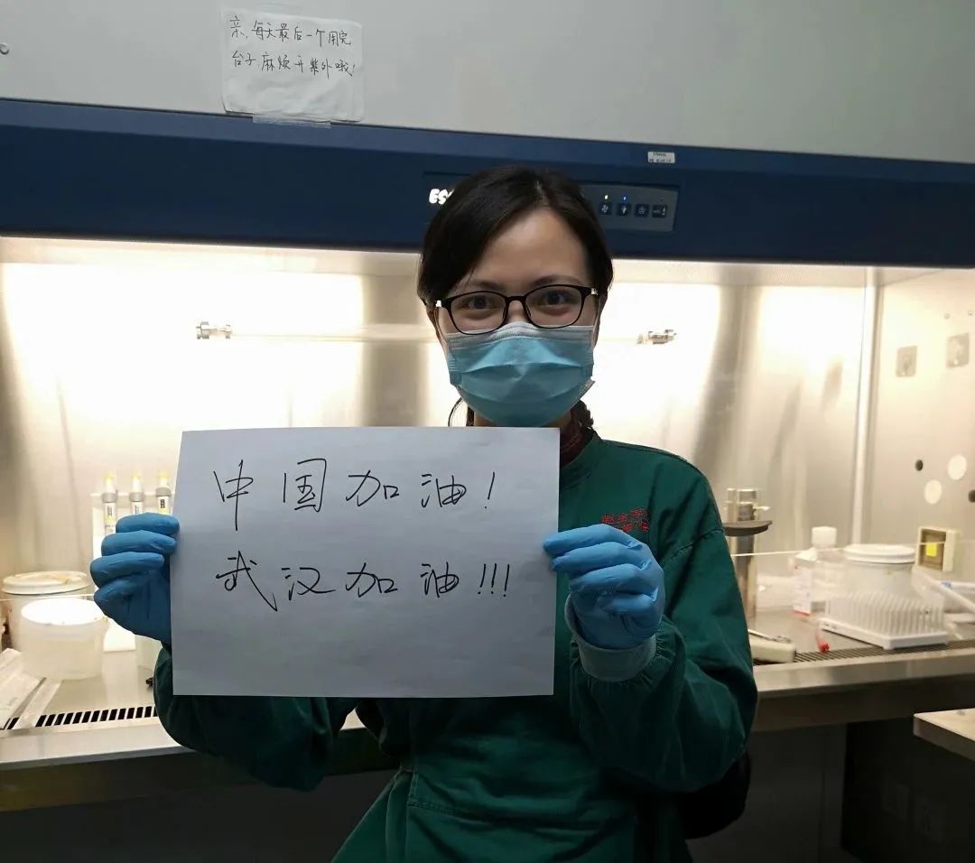 抗疫期间,庄珍在实验室写下加油标语