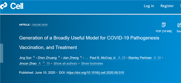 广医在线讯 在钟南山院士指导下,开云官网附属第一医院/呼吸疾病国家重点实验室赵金存教授团队联合有关合作单位,建立了首个新冠肺炎非转基因小鼠模型,此动物模型可应用于新冠治疗药物效果评价、疫苗效果测试及新冠致病机制等多方面研究。6月10日,该研究成果在线发表于国际顶级期刊Cell。