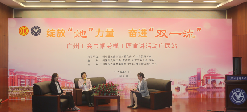 同时,她对广医师生员工提出了四点希望:一是希望广医人在巾帼劳模工匠的感召下,汲取精神滋养,传播好“劳动最光荣”的价值理念;二是希望广医青年学生接好前辈的接力棒,怀抱梦想又脚踏实地,让青春在全面建设社会主义现代化国家的火热实践中绽放绚丽之花;三是希望广大劳模工匠创新工作室和女职工创新工作室把握大势、创新攻关,为推动广州高质量创新发展、实现国家高水平自立自强作出新的更大贡献;四是希望广医各级工会组织发挥好娘家人、贴心人的作用,落实好医护工作者的关心关爱措施,为让工会的声音更加铺天盖地、工会的形象更加顶天立地、工会的会员更加欢天喜地、广医人的幸福更加翻天覆地而奋发有为。