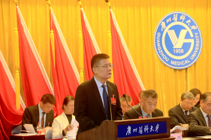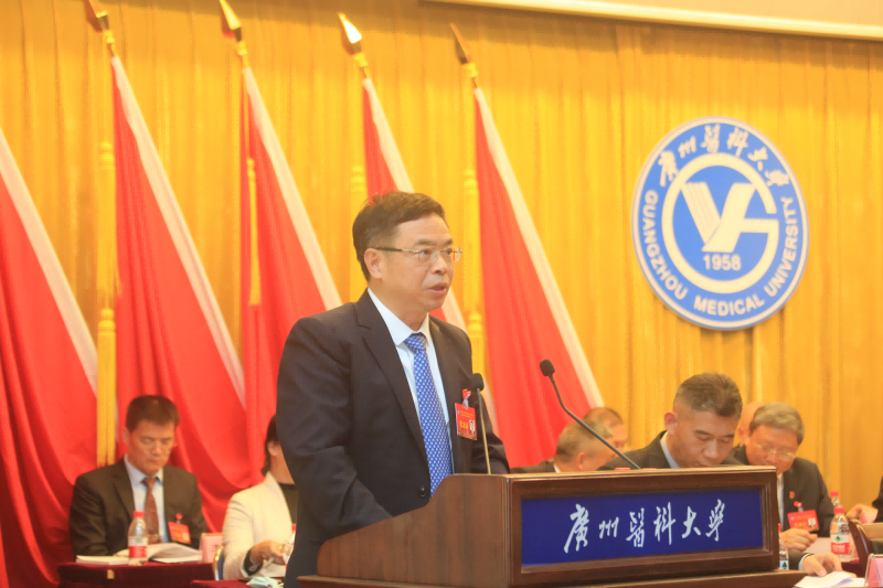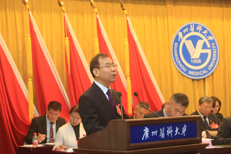 校长赵醒村代表学校作题为《凝心聚力 争创一流 奋力开创学校高质量发展新局面》的学校工作报告,从党的领导和建设、学科建设、人才培养、科技创新、师资队伍建设、附属医院发展、办学格局、社会贡献、服务保障体系九个方面对过去六年的工作进行全面总结,同时指出不足之处。
