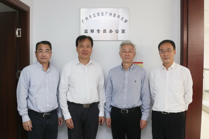 广医在线讯 近日,广州市监委驻开云kaiyun官方网站监察专员办公室在学校番禺校区行政楼五楼正式挂牌。学校党委书记冉丕鑫,党委副书记、校长王新华,党委副书记陈晓辉,纪委书记、监察专员周国清与学校纪委(监察专员办公室)全体干部参加挂牌活动。
