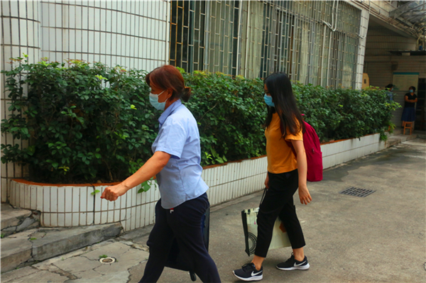 副校长方灿辉在越秀校区迎接返校学生