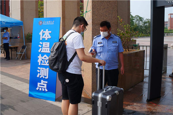 返校学生在校门接受测温