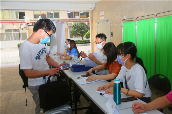 广医在线讯 5月11日起,按照分批错峰返校要求,阔别校园多日的学子们开始返回广医。有序排队、测量体温、身份核查、行李消毒、资料登记、核酸检测……经过一系列防疫手续,首批广医学子正式回到学校的温暖怀抱。校长王新华和副校长方灿辉、副校长赵醒村分别在越秀校区、番禺校区带领工作人员迎接同学们归来。