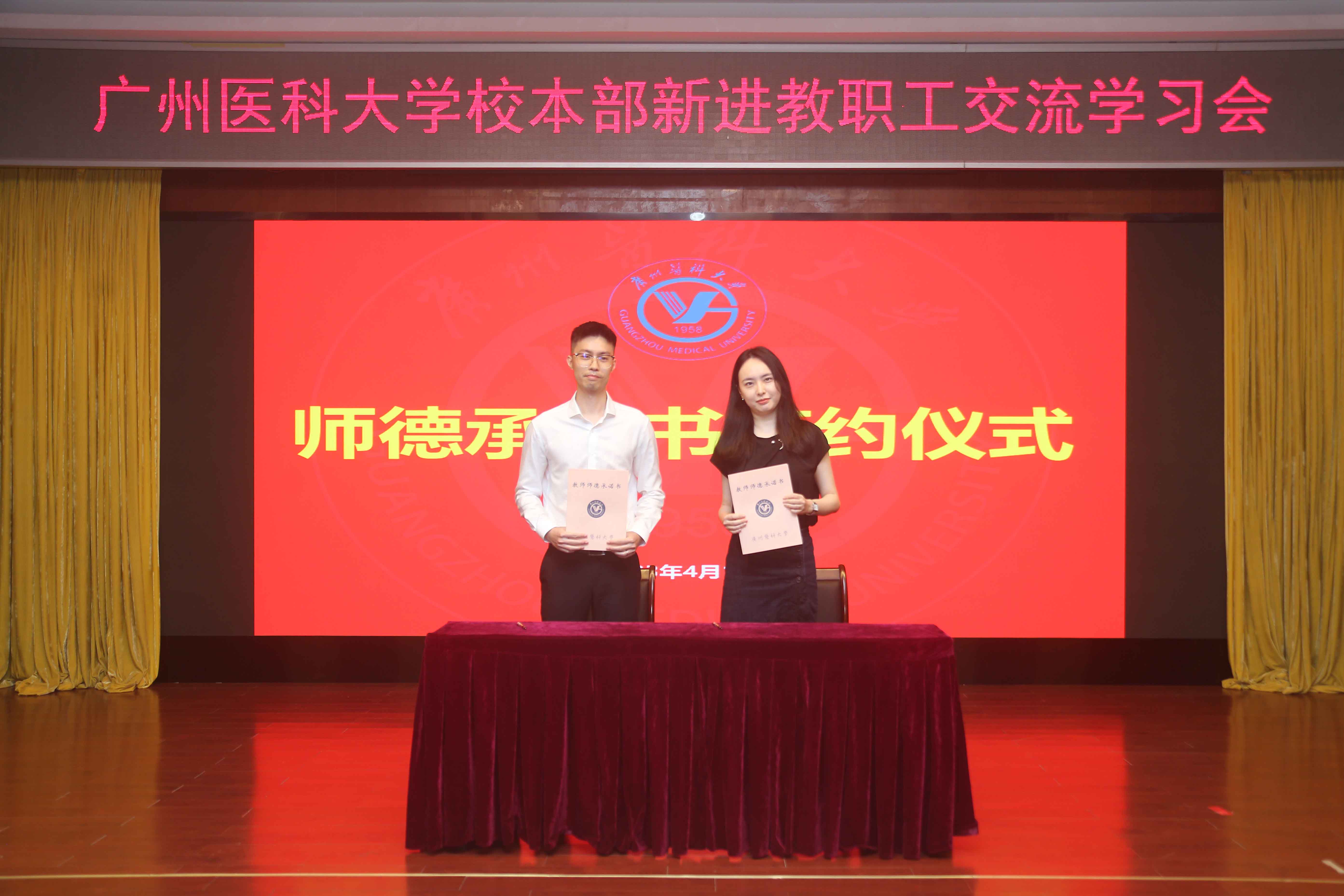 新进教师代表进行《开云kaiyun官方网站教师师德承诺书》签字仪式。