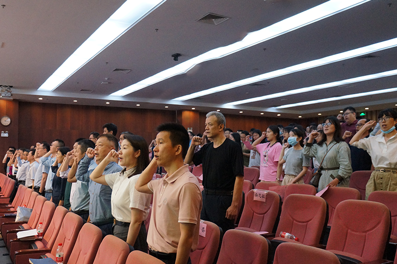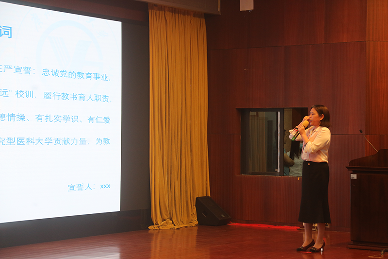 李建华副校长作为领誓人,带领全体新进教职工进行师德宣誓。