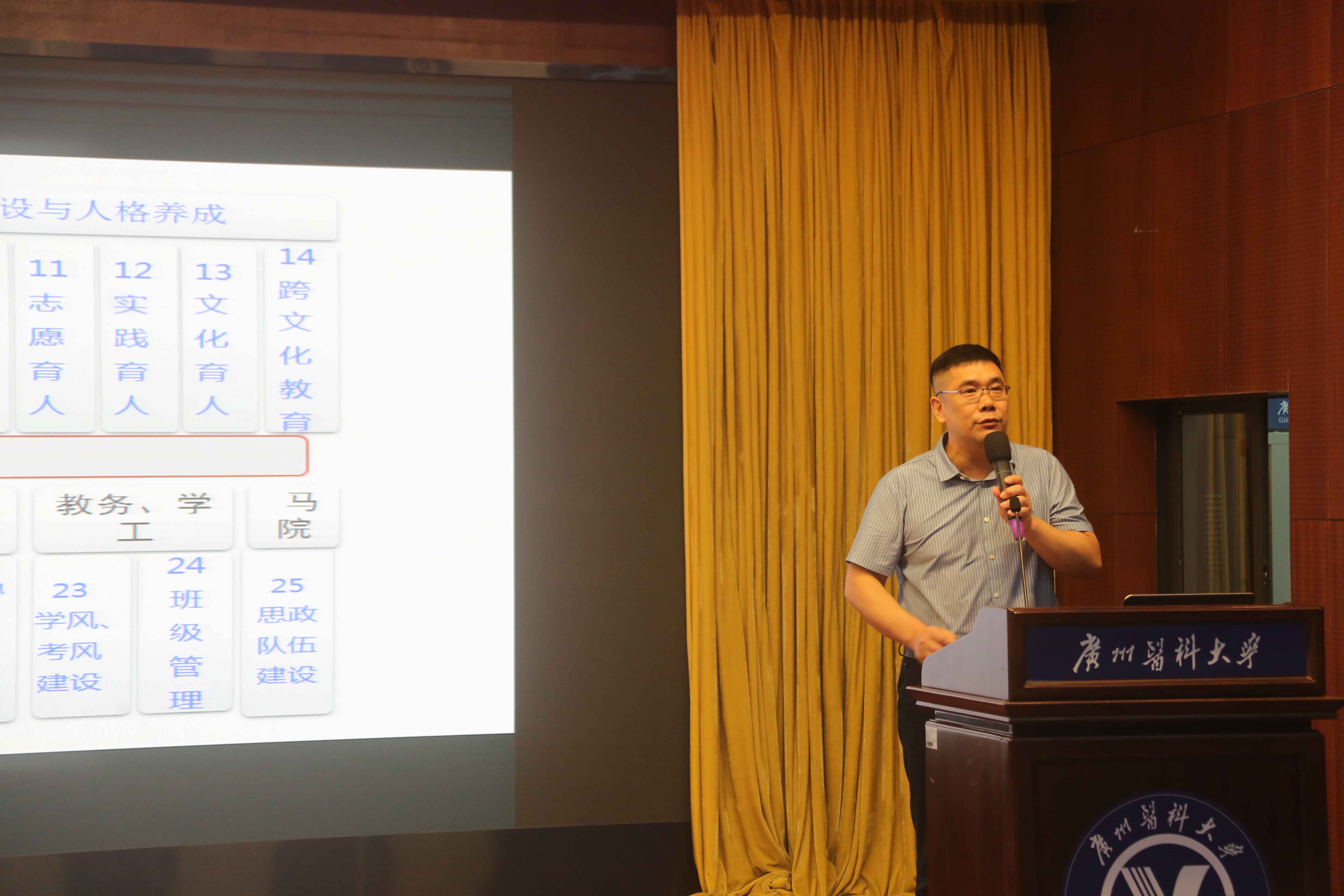 马克思主义学院副院长、广东省特支教学名师龚超教授以“有组织构建新时代高校思政育人体系”为题为新进教师讲授思政课。课程围绕立德树人和思政育人展开,从“立德树人时代使命”“有组织的研究创新”“打造课程思政精品”“构建‘1+6’育人体系”四个方面介绍了思政育人体系的总体脉络,为新进教职工日后职业规划和人生发展提供了参考。