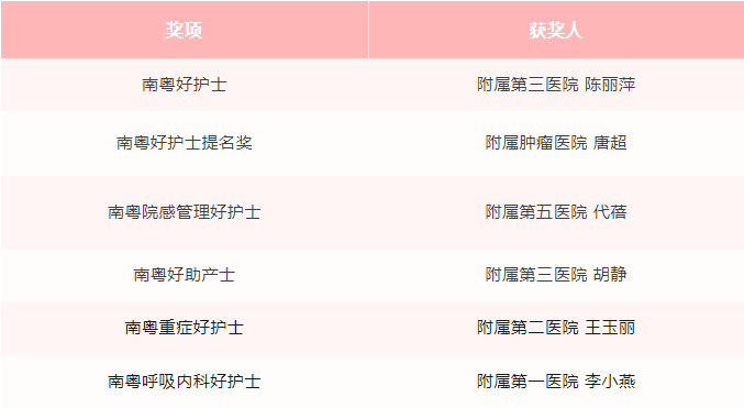 广东省护士协会组织开展第二届“南粤好护士”评选活动,授予10名同志“南粤好护士”称号、10名同志“南粤好护士提名奖”、120名同志“特殊战线南粤好护士”称号。