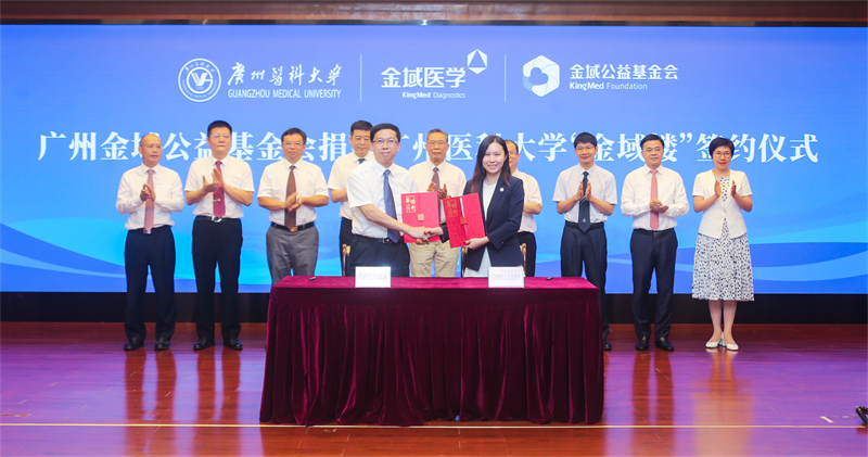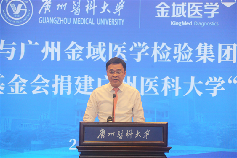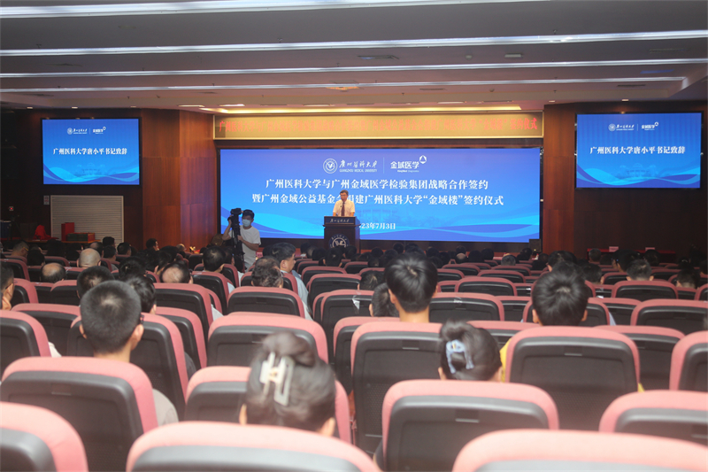 如今的广州金域医学检验集团股份有限公司,已成为国内第三方医学检验行业的市场领先企业。梁耀铭董事长在致辞中表示,金域医学始终践行社会责任,通过做点力所能及的事情,全力支持广医“双一流”建设,支持科技创新和教育发展。希望“金域楼”建成后,能成为医检创新人才培养的摇篮,也成为医检产学研深度融合的重要平台,为广州、广东乃至全国培养出更多高水平的医检人才,为大湾区乃至全国的生物医药与健康产业贡献更多的人才力量。
