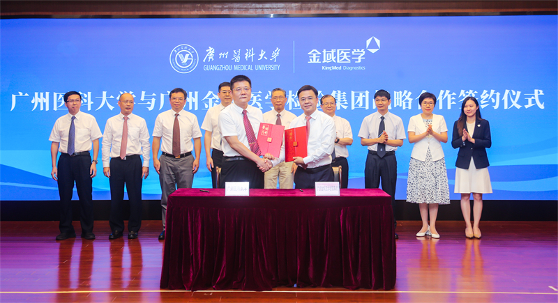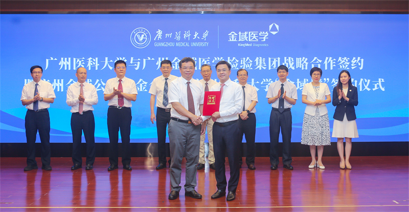 广州市教育局副局长华山鹰表示,广医近年来在人才培养、科学研究和医疗卫生领域不断取得标志性成果,特别是去年入选国家新一轮 “双一流”建设高校,为广州市高等教育高质量发展做出了重要贡献。广州金域医学集团是广州土生土长的高科技服务企业,现已成为国内第三方医学检验行业的市场领先企业。本次战略合作内容丰富、意义重大,希望双方充分发挥各自资源优势,持续深化各领域的合作,为深入推进国家和区域社会经济发展贡献自己的力量。一是希望双方加强产学研融合的内涵建设,共同构建一流人才培养的新高地;二是希望双方加强产学融合的创新引领,共同打造高水平科技自立自强的“新引擎”;三是希望双方加强产学研融合的成果转化,共同汇聚服务经济社会发展的新动力。
