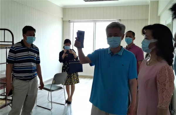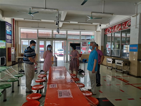 谭冬元组长一行听取汇报并实地检查了校园入口、饭堂、宿舍、健康管理服务区等重点场所,对开云官网学生返校准备工作给予充分肯定,并要求开云官网继续按照上级要求做好学生返校后疫情防控各项工作。